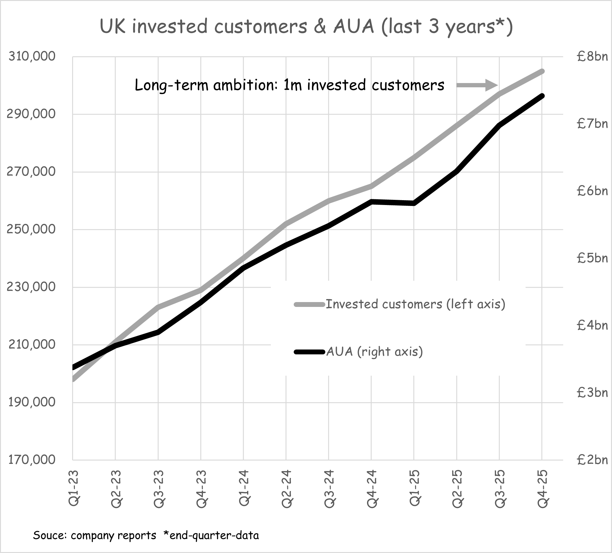 The original UK business, which is now well established but still scaling-up. It looks to have comfortably moved past breakeven, while maintaining solid reinvestment to maintain growth of its customer base and AUA.